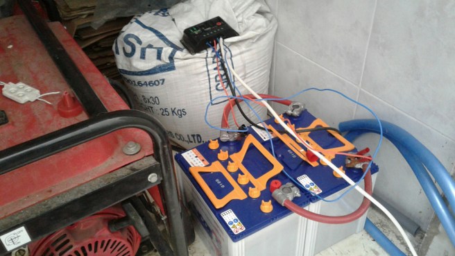 Masih kacau tapi sudah bisa operasional 🙂 Rencana akhir tahun paling tidak seluruh lampu rumah sudah bisa dihidupkan pakai solar cells. Sementara ini masih lampu taman saja hehehe.