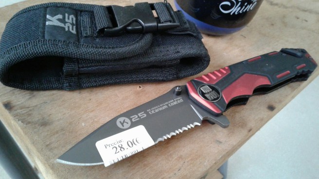 Dapat oleh-oleh dari adik waktu ke Spanyol pisau lipat berlapis titanium. Sejatinya titanium sangat-sangat tahan karat sehingga baik untuk pisau penyelam. Tapi untuk kegunaan umum kurang baik sebagai bahan utama pisau. Karena tingkat kekerasan yang rendah dibanding baja lain alias gampang tumpul. Baja non magnetik yang tergolong mahal ini baik untuk pegangan pisau atau bisa sebagai pelapis baja utama.