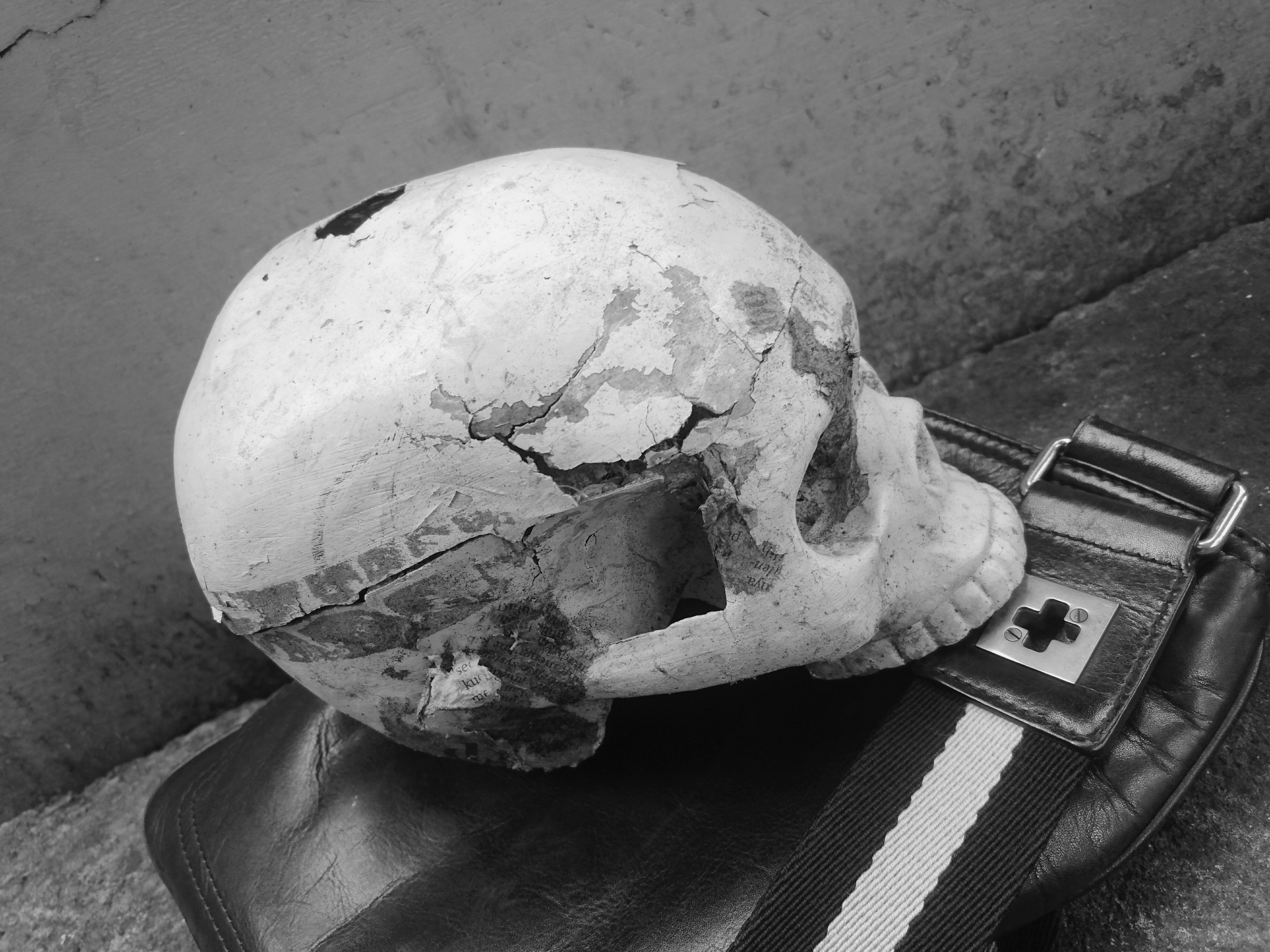 Tengkorak ini punya jasa besar dimasa mudanya. Banyak orang memandang dan mengelus-elus dirinya. Tapi, begitulah sifat manusia. Setelah usia senja, tengkorak ini jadi barang rongsokan dan dibuang sembarangan. Tengkorak ini terbuat dari bahan fiber. Bagus buat pose foto juga khan? Kalau mau tes beli tidak apa, nanti (kalau ingat) dikembalikan lol