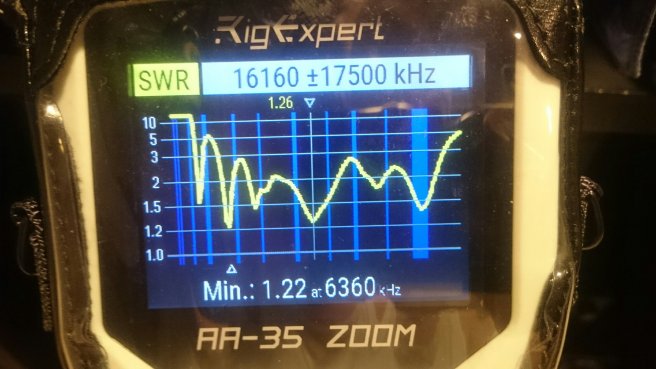 Alat ukur tidak mungkin “bohong”. Saya menggunakan RigExpert AA-35. Antena saya hanya berfungsi baik di satu band sekitar 15m. Standar normal adalah nilai SWR di bawah 1.5.