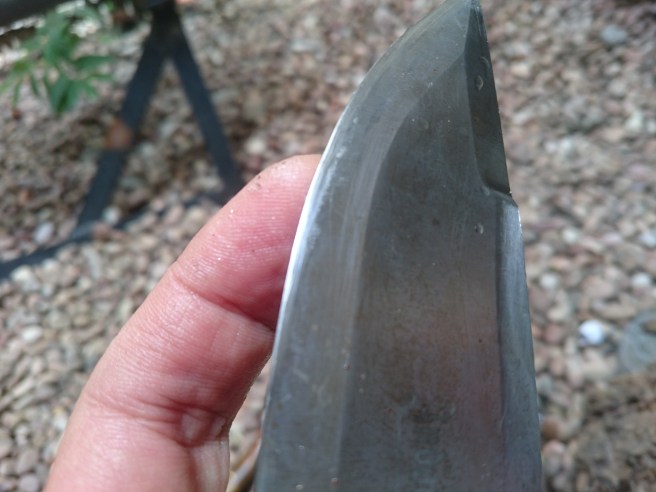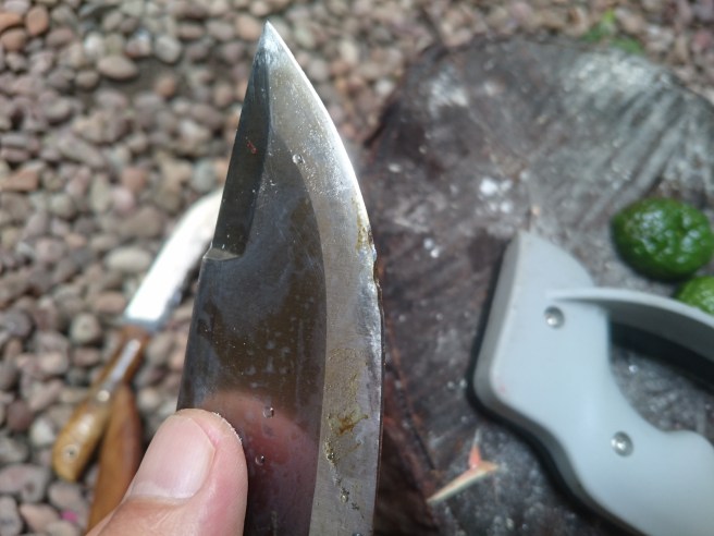 Untuk pisau bahan baja dari per Jeep tidak terlalu butuh waktu lama. Sekitar 30 menit saja. Hasil dari geretan Victorinox selalu kasar. Maka perlu dihaluskan. Bisa pakai batu asah atau yang lain.