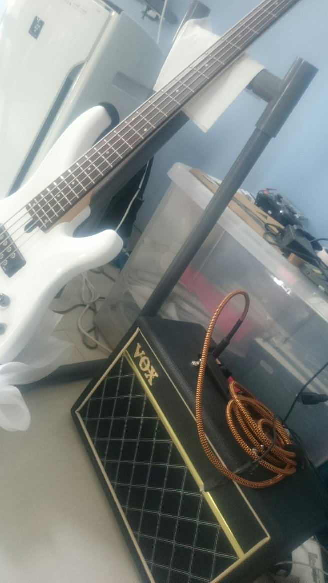 Dari sore sampai malam obok-obok toko musik, akhirnya beli yang versi 5 string – Yamaha TRBX 305. Versi 4 string TRBX 304 stock habis. Sedang sound system milih VOX 10W.