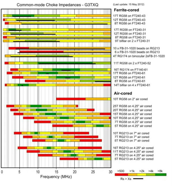 Ternyata kuncinya (dari baca-baca) ada pada impedansi. Jika impedansi besar, maka efek panas ini akan berkurang drastis. Untuk material #61 misalnya, nilai permeabel tidak sebesar #43. Dengan kontra material #61 lebih tahan saturasi. Pilihan tergantung selera. Semakin besar impedansi, semakin baik untuk meredam CMC (common mode current) alias signal liar dari mana saja. Untuk antena dipole diharapkan minim 5K Ohm.