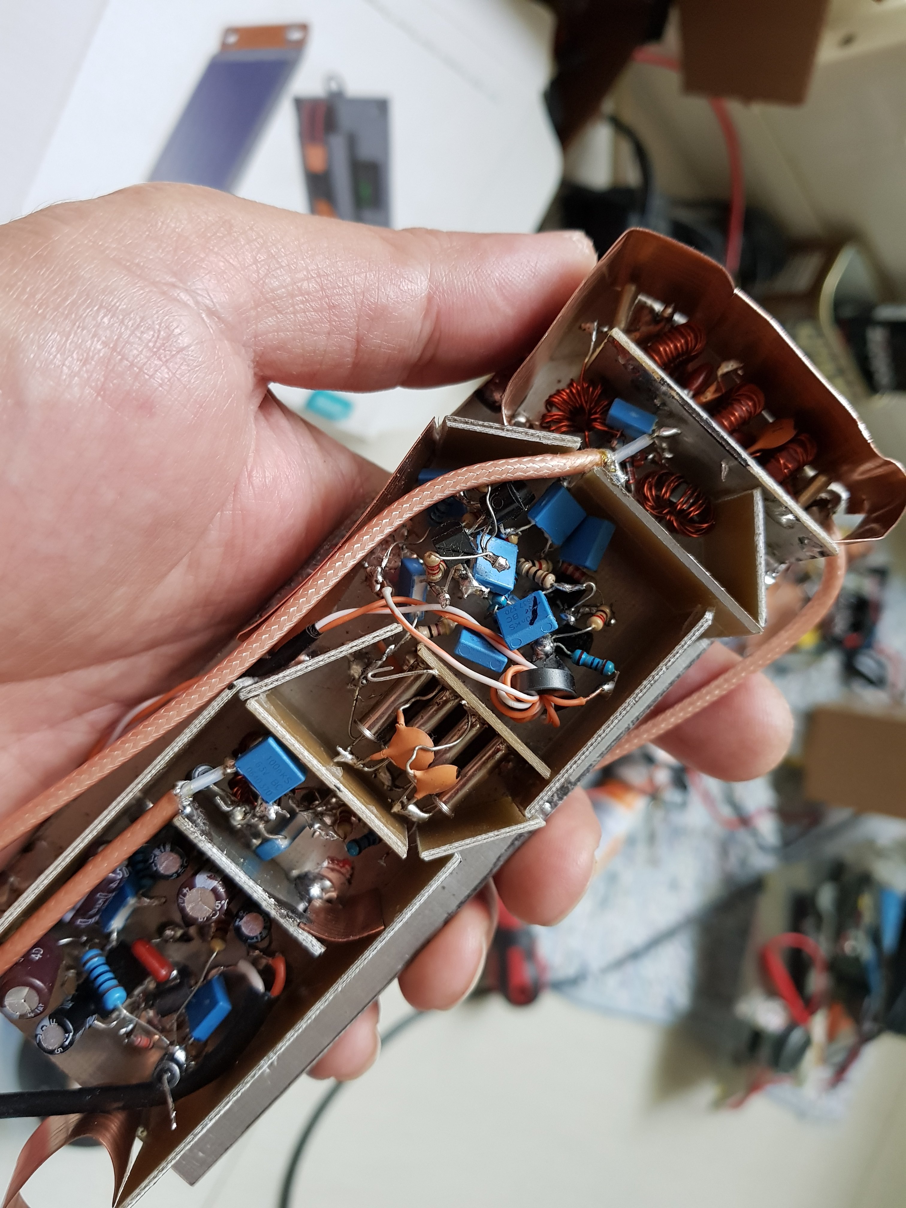 1. Cara tes apakah rangkaian TIA nya bekerja seperti apa ya? Saya pernah mencoba memberi input dari si5351 dan output saya ukur lewat rf probe n5ese ke multimeter digital tapi sepertinya tidak terjadi penguatan, saya sudah coba beberapa rangkaian dan memastikan nilai komponen benar