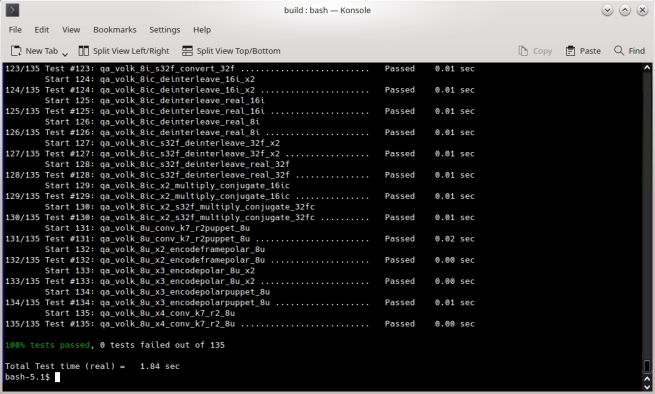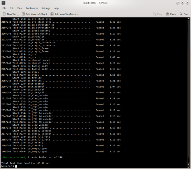 Semua test lulus 100% baik pada volk maupun gnuradio. Jika ada yang gagal… sudah bayar belum uang kost bulanan Anda? Wkwkwk