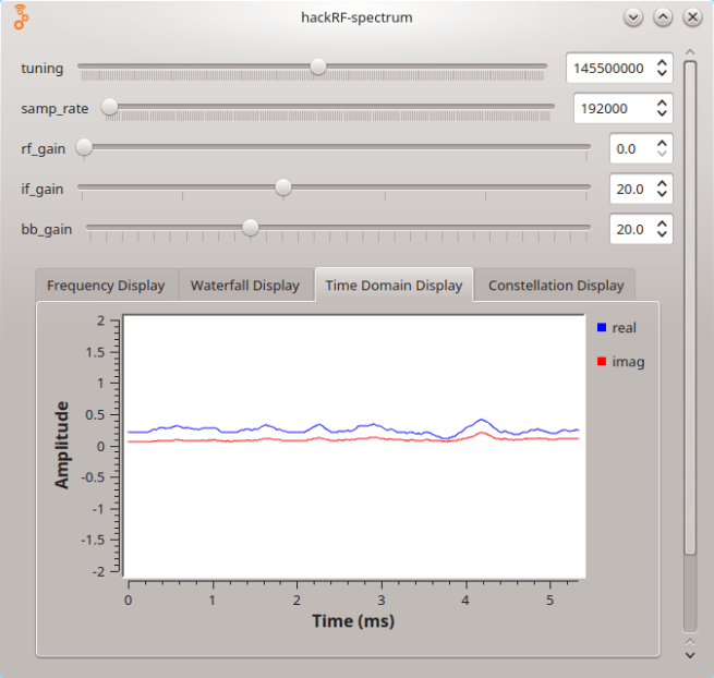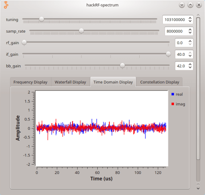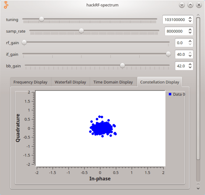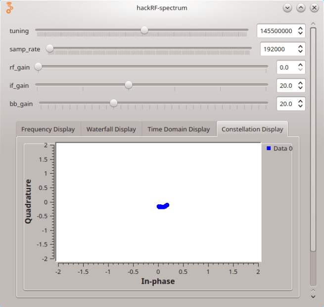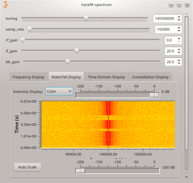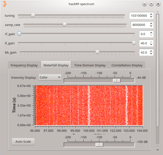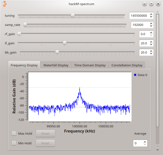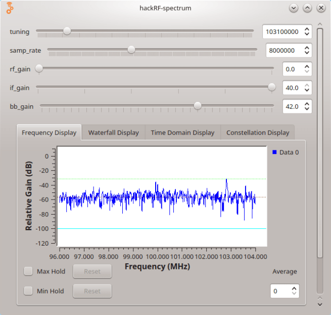 Ingin membuat tampilan spektrum dari perangkat ICOM IC-V80 yang bekerja di VHF, dan sekalian spektrum pemancar radio FM sekitar. Jadi saya set 88MHz sampai 200MHz. HackRF One mampu merambah sampai 6GHz sejatinya.