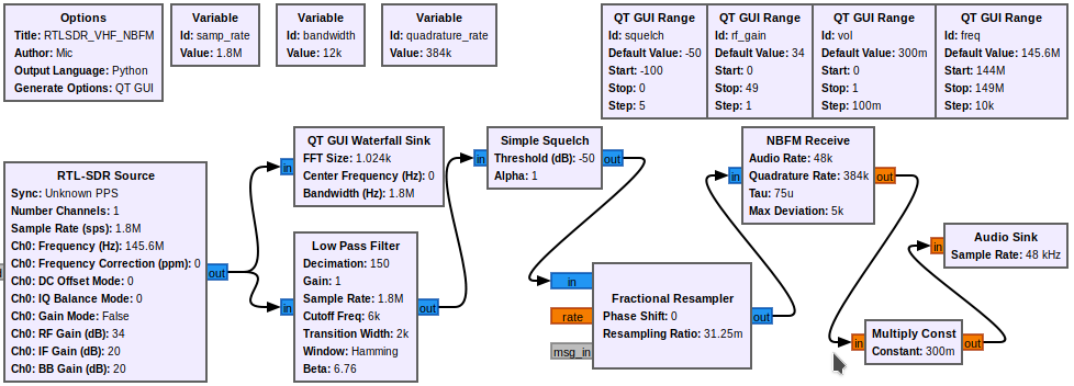 Eksperimen dengan RTL-SDR dan GNU Radio untuk RX NBFM VHF. NBFM kadang ditulis NFM saja 🙂