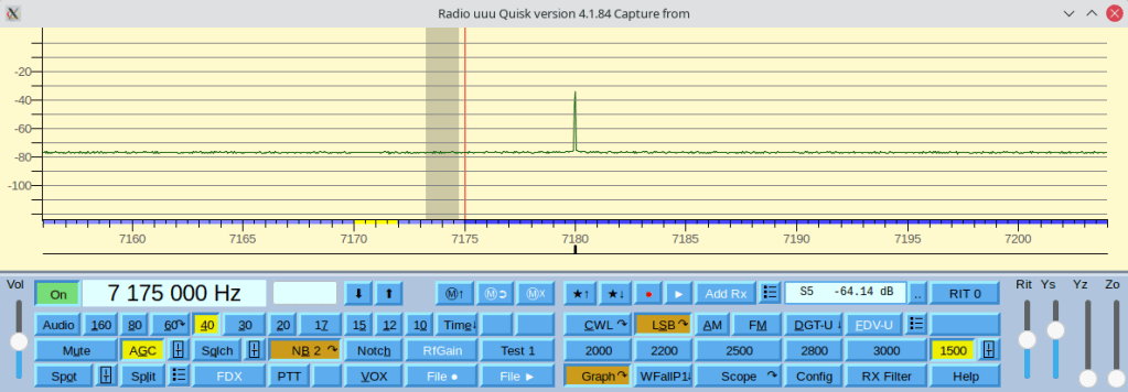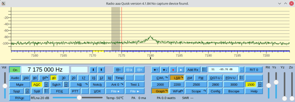 libasound.so.2.0.0 ternyata “wrong version” soal penamaan. Saat update terakhir Slackware, telah diperbaiki. Sekarang tidak terjadi OOOOOOOOOOO. Noise floor juga sudah turun jadi -95dBm. Quisk belum saya set karena tidak punya perangkat hardware nya hehe.