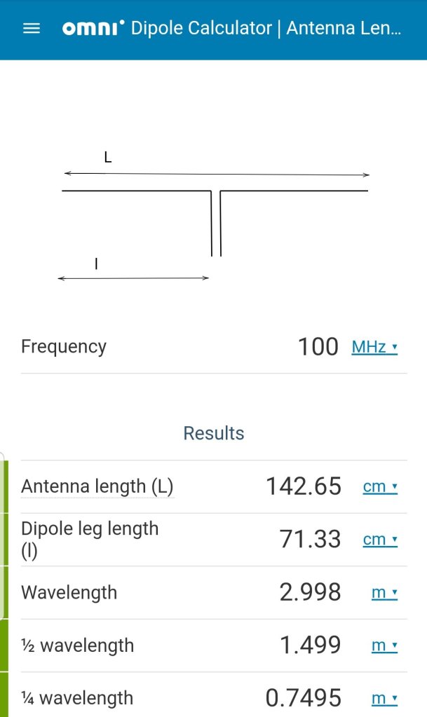 Jika diinginkan antena untuk Rx FM radio, anggap saja 100MHz, maka panjang total antena = 300/100 = 3 meter. Itu untuk 1λ. Lebih praktis pakai 1/2λ, atau 1/4λ.
