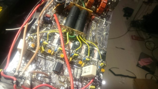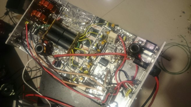 Karena menggunakan tegangan kerja 48V, output ke antenna /dummy load bisa ratusan volt. Saya mengerjakan dengan hati-hati project ini. Bagian demi bagian dan memastikan tiap tahap berfungsi.
