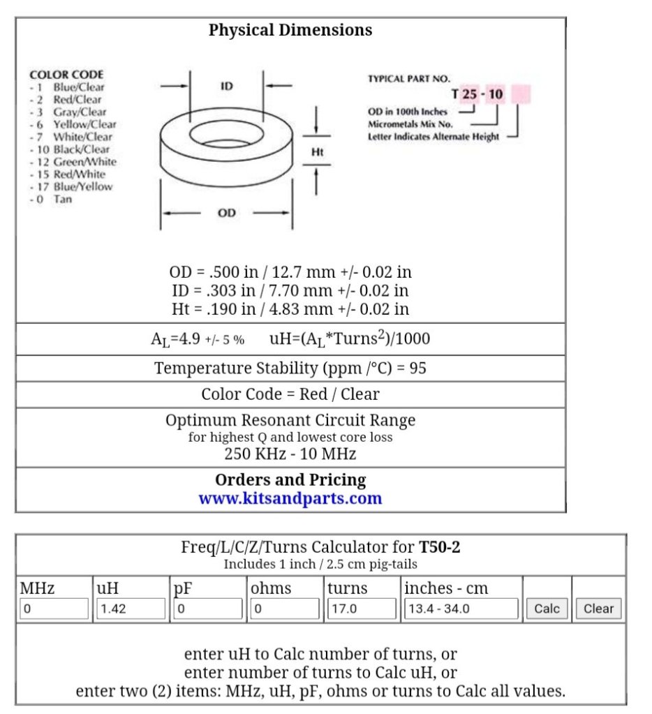 Belok bentar topiknya. Jika Anda mengambil sebuah toroid T50-2 dan melilit dengan kawat e-mail sebanyak 17x, maka hasilya sekitar 1,42uH