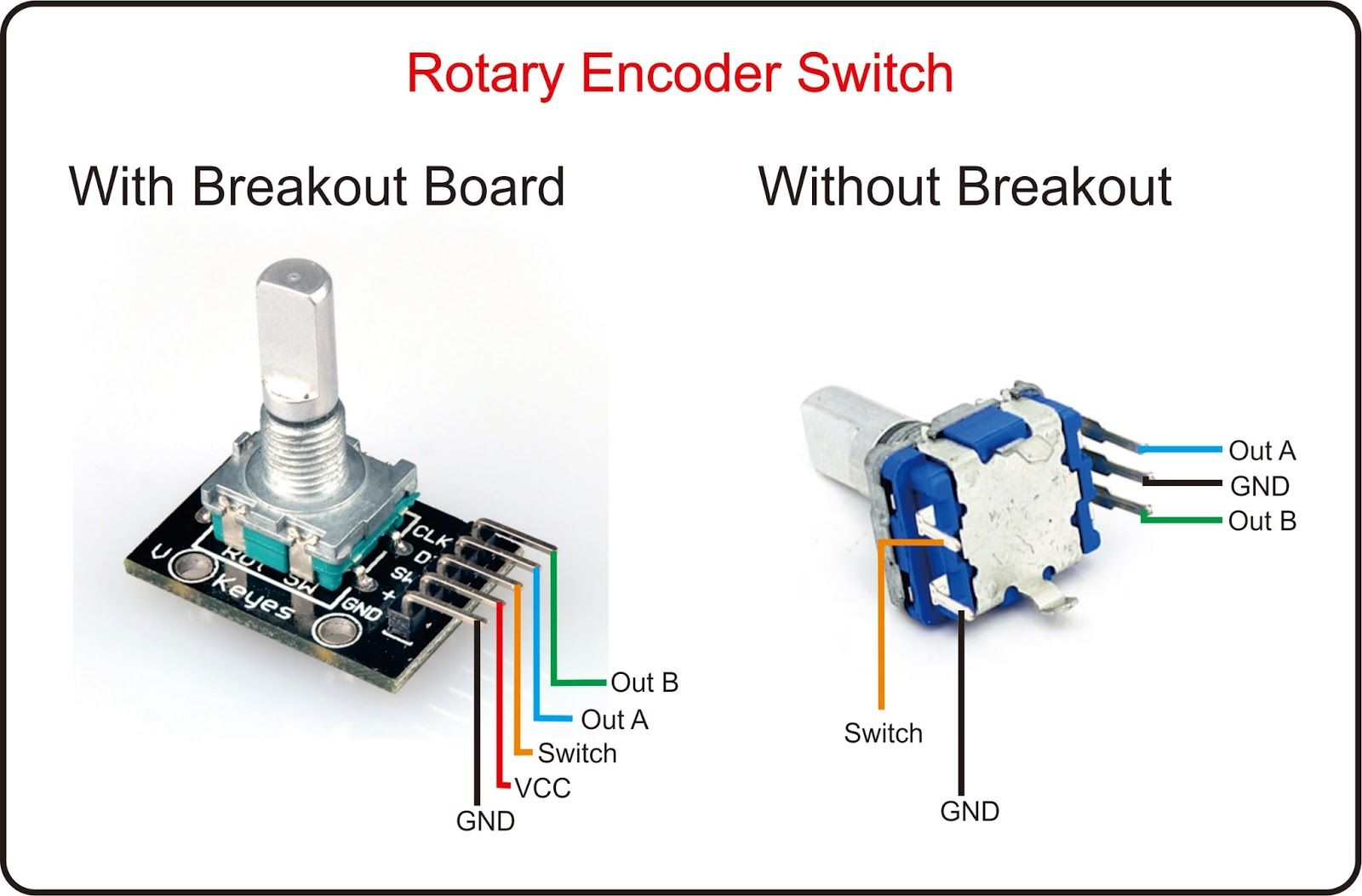 Out A dan Out B terhubung dengan bagian interupt dari Arduino Nano pin D2 dan D3. Untuk output Swicth dengan D7.
