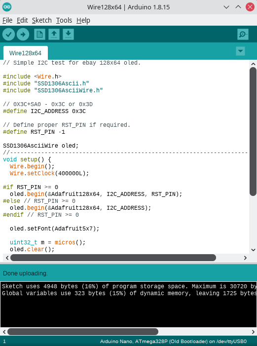 Untuk program Klik Files –Examples — SD1306Ascii — Wire128x64