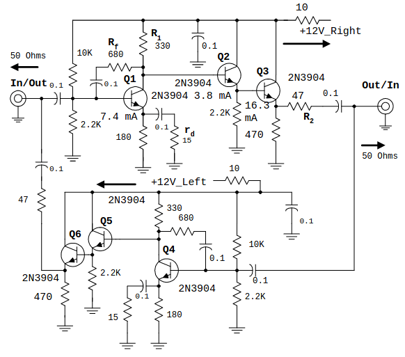 Saat pertama kali, digunakan rangkaian TIA (Termination Insensitive Amplifier) dari UBITX v6. Penguatan yang terjadi adalah sekitar 15dB. Yach cukup 1 blok TIA saja sebelum IF xtall filter. Jika menambahkan sebuah TIA lagi sesudah IF akan terjadi overload pada audio amplifier.