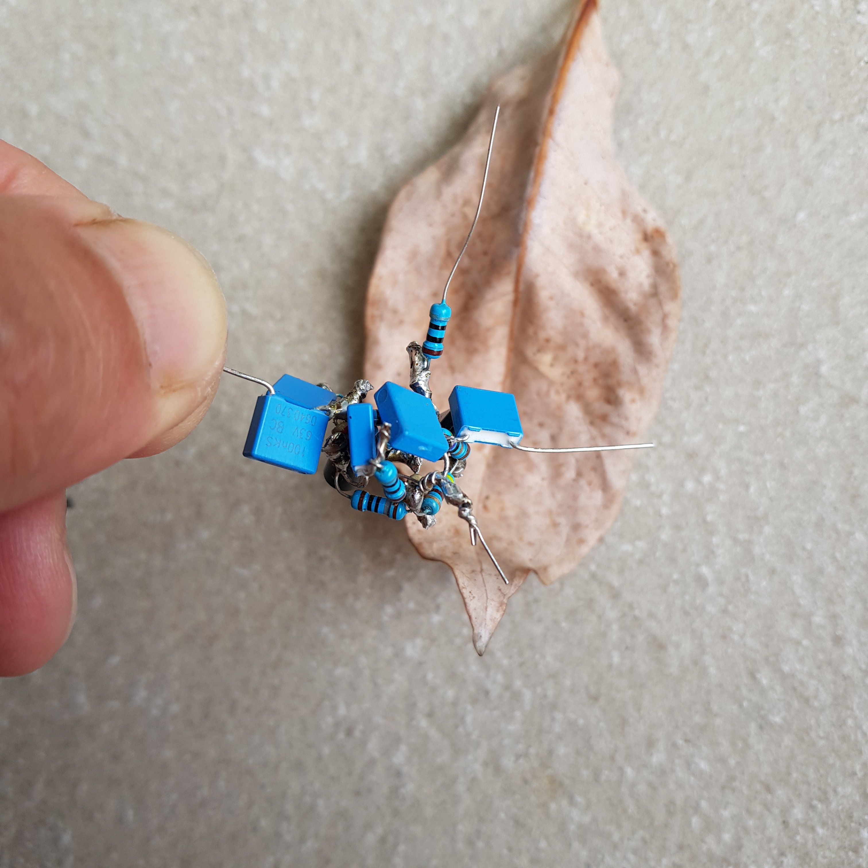 Meski “ugly”, koneksi antar komponen kokoh. Bayangan kalau rangkaian ini mudah “short circuit” jarang terjadi. Memang perlu praktek beberapa kali agar terbiasa. Tiap komponen menopang satu sama lain dan jaga jarak dengan mantap. Model ini untuk prototip oke untuk project final juga oke.