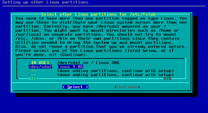 /etc/fstabLanjut next…next….next…. sampai kebagian ELILO.