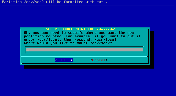 /dev/sda2 dan isikan /home (sesuai rencana)
