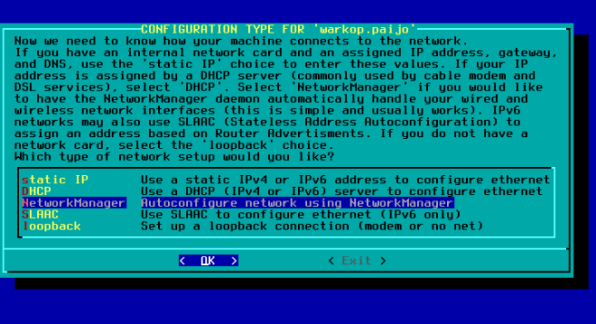 NetworkManager. Kecuali Anda melakukan set IP address di rumah/kantor Anda.