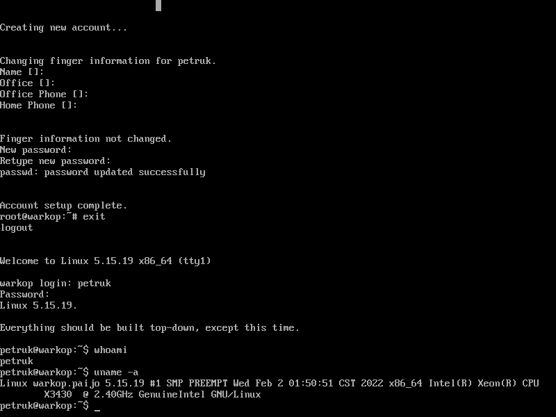 Kosongkan Name, Office, Office Phone, Home Phone karena petruk jualan pentol bakso tidak punya kantor :). Berikan password untuk petruk. Kemudian ketik #exit. Login kembali dengan user petruk.