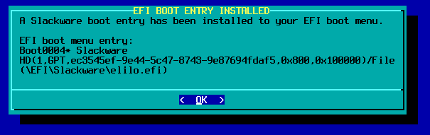 Letak configurasi ada di /boot/efi/EFI/Slackware/elilo.conf