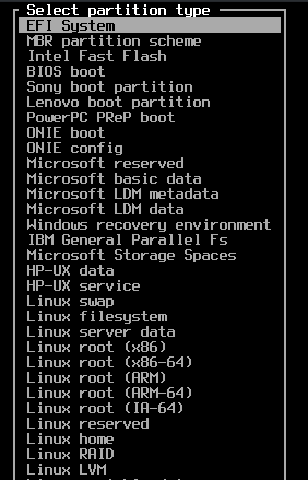 Saat melakukan partisi, dengan cfdisk, buat partisi untuk EFI sebesar 500MB. Boleh 300MB / 100MB kalau space hardisk mepet. Nilai 500MB untuk memastikan chip EFI jadul sampai sekarang bisa jalan. Ada yang rewel kalau cuma 100MB.