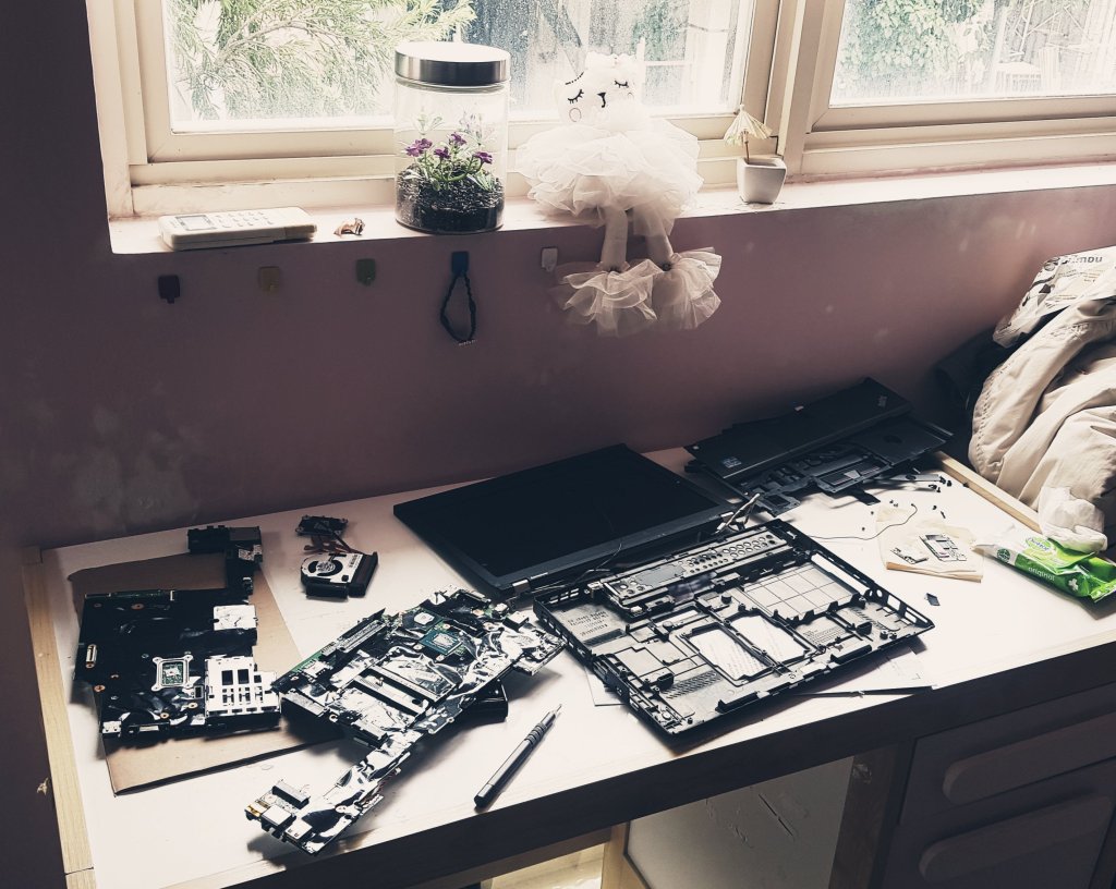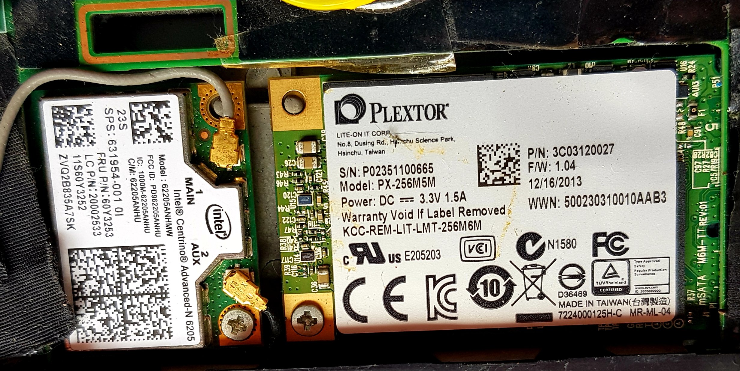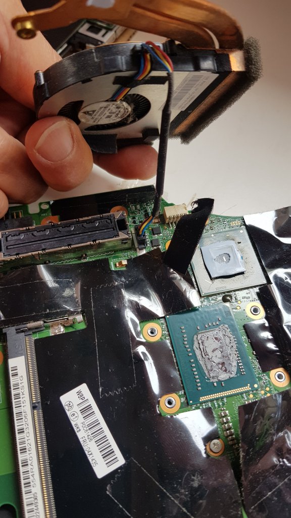 Motherboard lama ini thermal pastanya meluber. Apa yang dilakukan pabrikan tidak selalu sempurna. Saya menggantinya dengan Z10. Lebih baik daripada menggunakan pasta sikat gigi yang sama-sama nano material hehe bercanda!Biasanya pakai thermal pasta murah meriah buat eksperimen elektronika, sekali tempo coba yang berkelas sedikit :). Z10 ini termasuk mahal, cuma tetap lebih murah dibanding kalau ngopi di kafe mall berdua lol. Sekalian membersihkan FAN. Tembaga adalah penghantar panas dan listrik terbaik setelah emas. Kalau heatsink pakai emas, bisa-bisa harga heatsink lebih mahal dari laptopnya sendiri.Antena untuk Bluetooth berupa jalur PCB saja. Baterai kancing juga waktunya ganti. Sebelumnya, saya menemukan HP Spectre X360 punya pin baterai CMOS yang berbeda dengan Thinkpad X230. Untuk Spectre X360 saya mesti memotong kabel baterai kancing dan membalik polaritasnya. Kabel abu-abu ini jalur antena WIFI yang letaknya di belakang layar.WLAN card Intel Centrino Advanced N 6205 dan mSATA. Untuk memory RAM pakai DDR3 16GB. Pakai 2x 8GB. Siap untuk lari marathon 🙂Peralatan tempur hanya ini saja. Contact cleaner ini penting jika menyangkut peralatan komputer jadul. Setiap konektor atau soket mesti dibersihkan. Kaki-kaki memory, WLAN card, dan SSD.