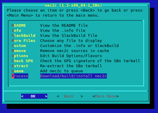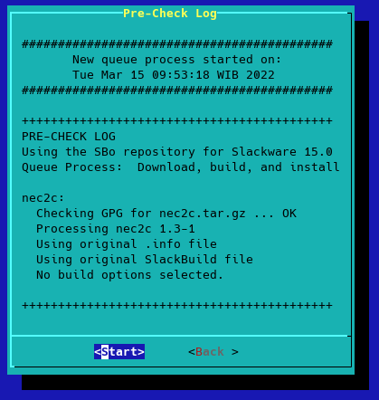 Cara paling mudah untuk terhubung ke repo slackbuild ini dengan menggunakan sbopkg. Download dan install tool ini terlebih dahulu. Versi akhir sbopkg saat ini 0.38.2. Tanda $ sebagai user biasa, sedang # sebagai root. Anda dapat menggunakan sudo jika ingin.