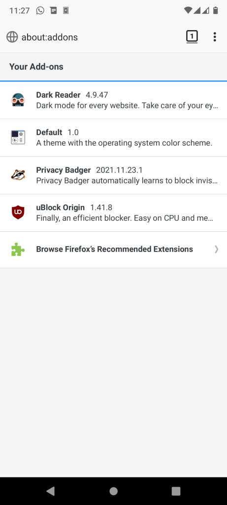 Dibanding browser bawaan Lineage OS, Firefox dari Mozilla bisa tambah add-ons seperti UB. Jika tidak ingin terganggu dengan aneka iklan.