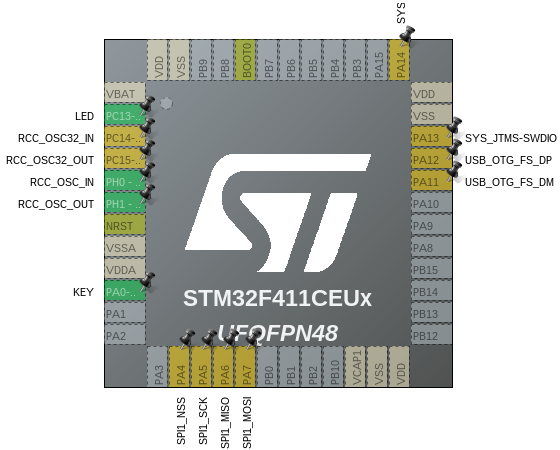 STM32F411CEU6 berbasis Cortex -M4 dengan FPU (Floating Point Unit). Flash 512KB dan SRAM 128KB. Adiknya STM32F401CCU hanya punya Flash 256KB dan SRAM 64KB. Minimum sistem yang popular punya julukan black pill (kalau yang F103 dinamakan blue pill).