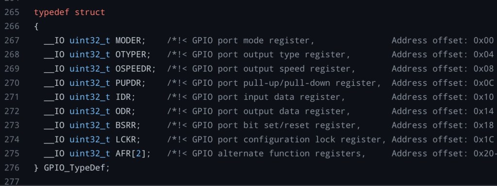 Daripada memberi nama sendiri tiap register, pakai standard CMSIS saja agar mudah diterima di mana-mana. Apalagi Anda ingin terlihat sebagai pemain PRO!