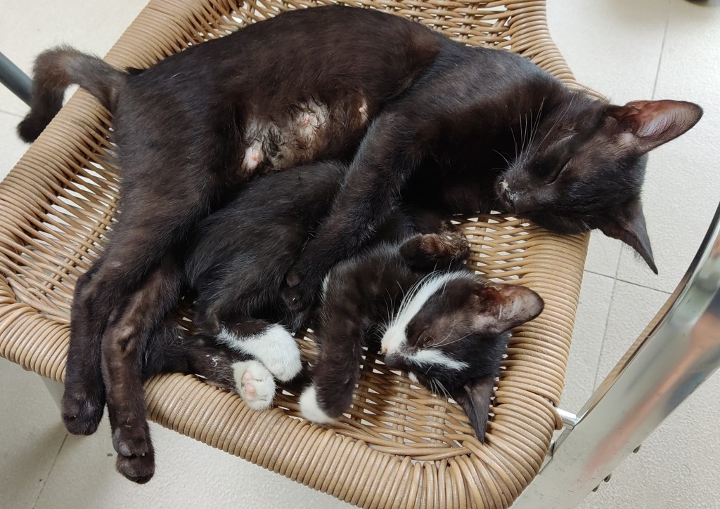 Ini kursi yang biasa saya pakai dan kucingnya punya tetangga hehe. Dia berhasil menduduki tempat baru tanpa perang. Mengalah saja dech, minggir lesehan di lantai.
