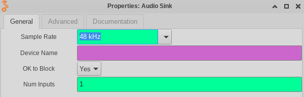 Logika sinkronisasi sederhana saja. Jika Audio Sink 48KHz, maka output WBFM mesti 48KHz. Jika sample rate pada RTL-SDR 1,2MHz, maka WBFM menerima input quadrature rate 1,2MHz. Perlu decimation 25 pada WBFM agar output WBFM sebesar 48KHz. Nilai 1,2MHz/25 = 48KHz.