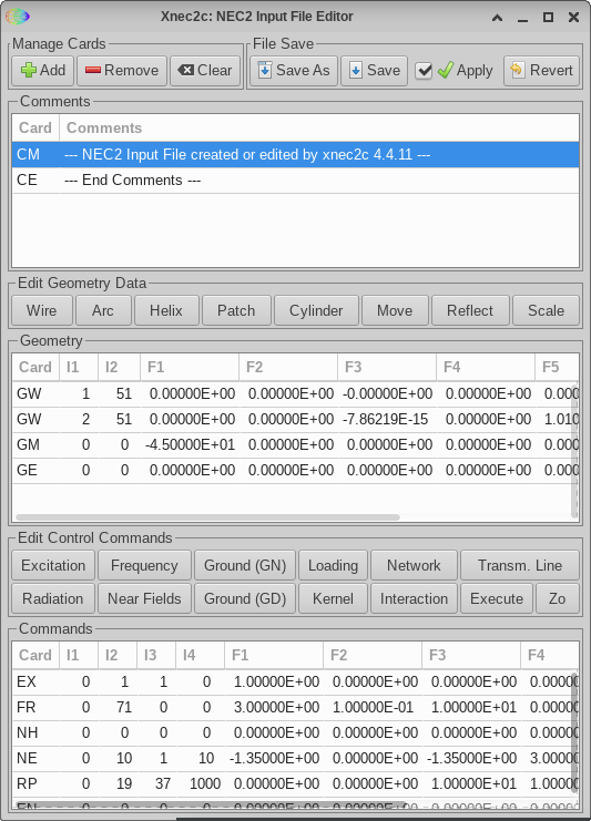 Saya menggunakan Xnec2c v. 4.4.11 dan Slackware 15. Jika Anda menggunakan Ms Windows, program simulasi EZNEC Pro+ v7 yang populer sudah dilepas free.