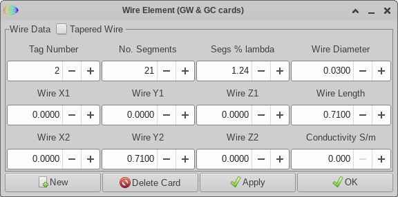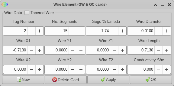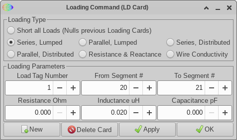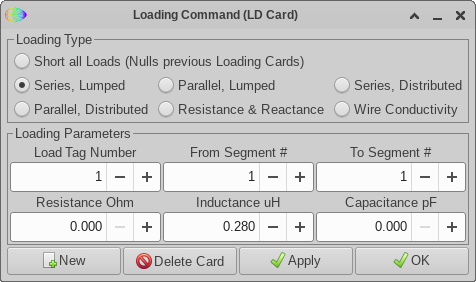 Proses menentukan loading coil sebagai berikut. Pada bagian LD (di Xnet2c) isi nilai coil dan simulasikan. Ubah nilai tersebut agar didapat nilai VSWR terendah (dan gain tertinggi) pada frekuensi 100MHz dalam kasus ini. Nol-kan nilai kapasitor karena ingin digunakan induktor saja.