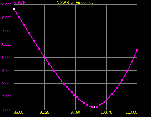 Dari simulasi bisa diperoleh VSWR 1:1.1 pada frekuensi 100MHz. Yach ini hanya simulasi ya 🙂