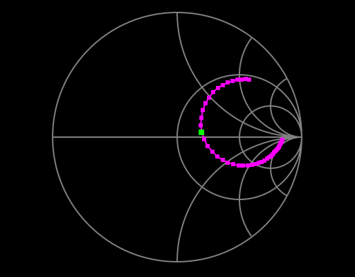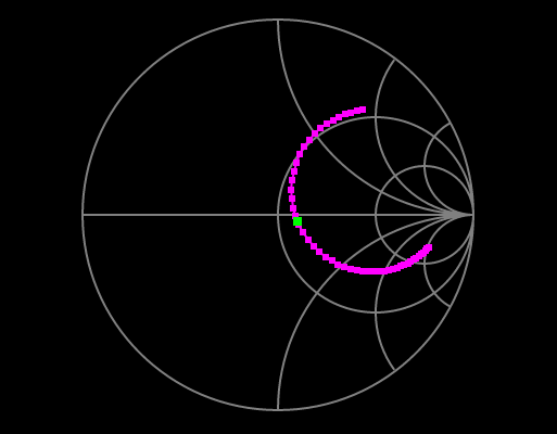 Yang menarik dari antena 5/8 Lambda ini (selain urusan gain) adalah “loading coil” agar antena ini bisa match dengan 50 Ohm. Intinya menggunakan L-network matching yang terintegrasi di antena. Tapi, di simulasi ini tanpa pakai kapasitor hanya induktor saja untuk matching. Tapi berapa nilainya? Perhitungan matematis untuk mendapat nilai ini ruwet. Dengan simulasi, segalanya lebih mudah.