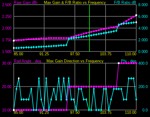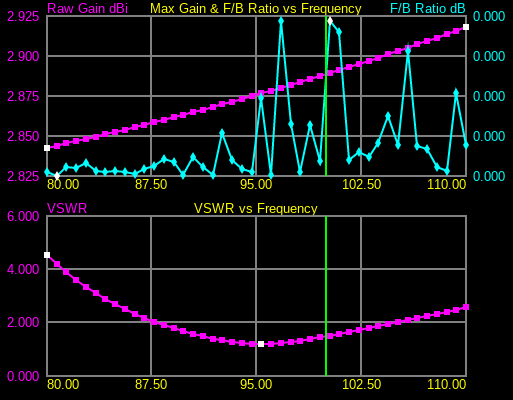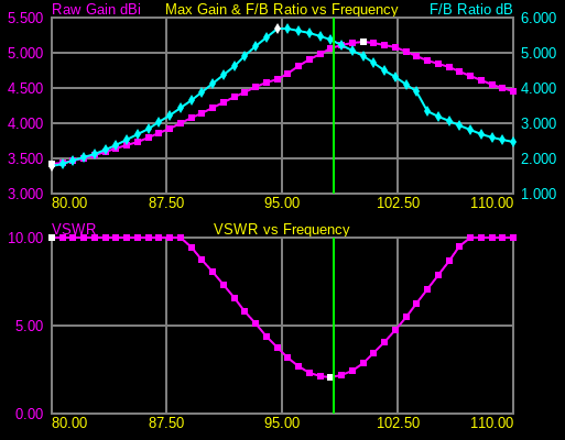 Antena ini punya max gain 5,1 dBi. Tapi “Angle of radiation” tidak memuaskan. Kebanyakan negatif dBi. Tetap saya tampilkan sebagai dokumentasi. Lain waktu akan saya buat lebih baik lagi. Saya sempat mensimulasikan sampai triple stack dengan hasil yang semakin kacau hehe. Cukup double stack saja kali ini.