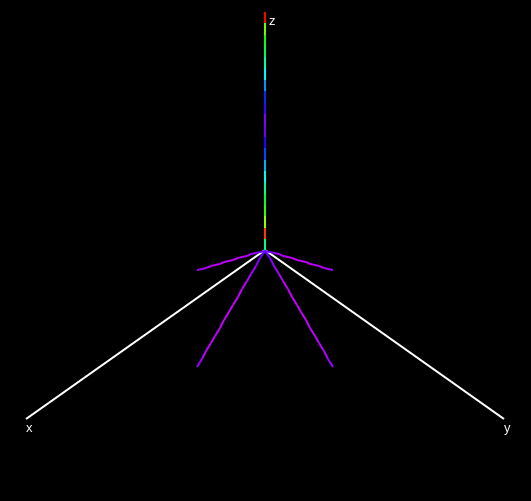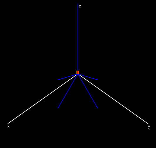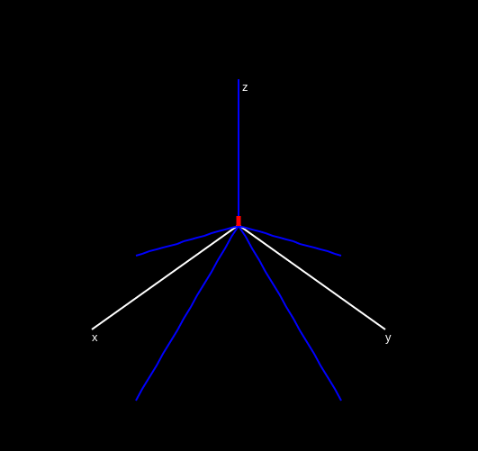 Dengan 4x radial 45 derajat, gain yang diperoleh lebih tinggi dibanding 4x radial 0 derajat. Gain max 3,6dBi. Yach hanya beda sudut radial, dan gain ikutan berubah signifikan juga. Meski perbandingan di simulasi ini tidak konsisten, misal untuk parameter jumlah segment dan ukuran whip (yang tambah kurang sedikit) tapi gambaran dasar tetap diperoleh.