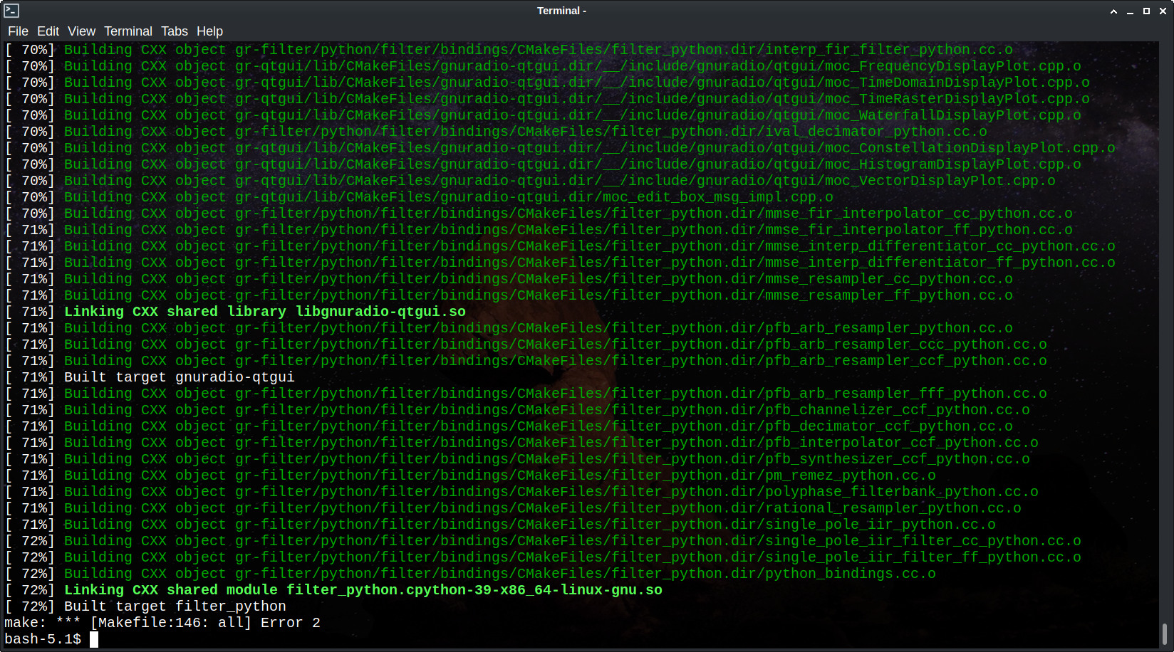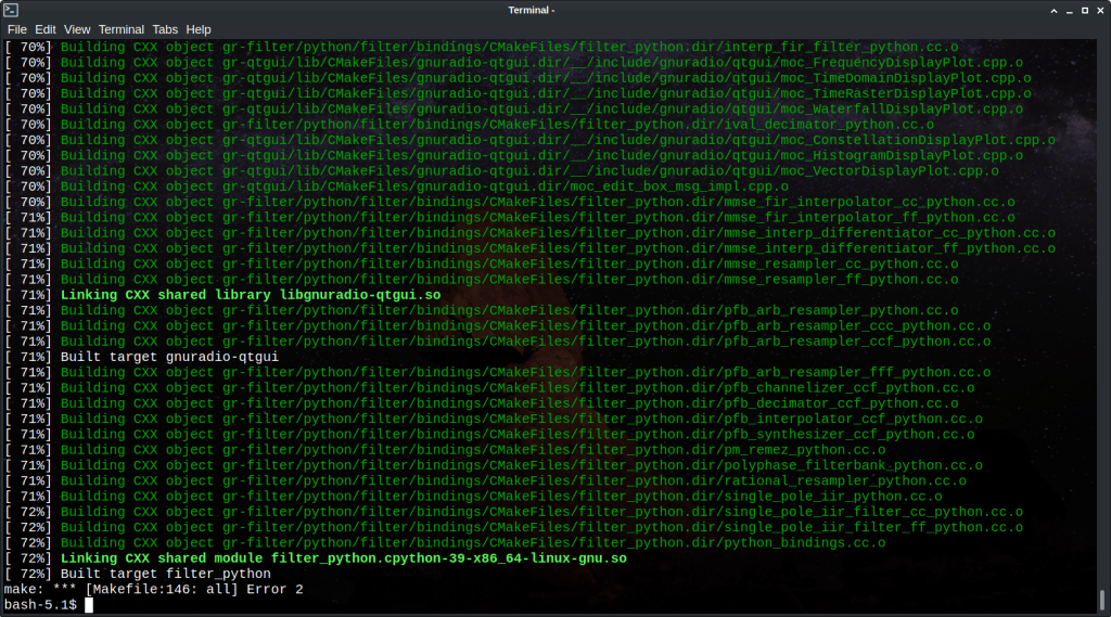 Setelah proses kompilasi mulus 100% tanpa jeda, lanjut ke proses instalasi. Lakukan “make install”. Kemudian #ldconfig untuk memastikan semua “tersambung” dan terakhir aktifkan GNU Radio!