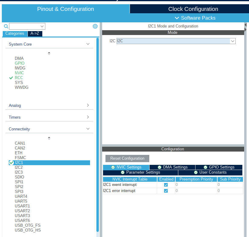 Sedang contoh untuk menggunakan library ini seperti di bawah : (saya menggunakan interupt dan DMA pada I2C).