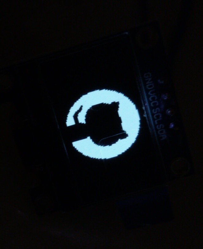 Lakukan kompilasi/ Build project dan RUN. Semestinya OLED Anda akan unjuk gigi bersama kucing kesayangan Anda.
