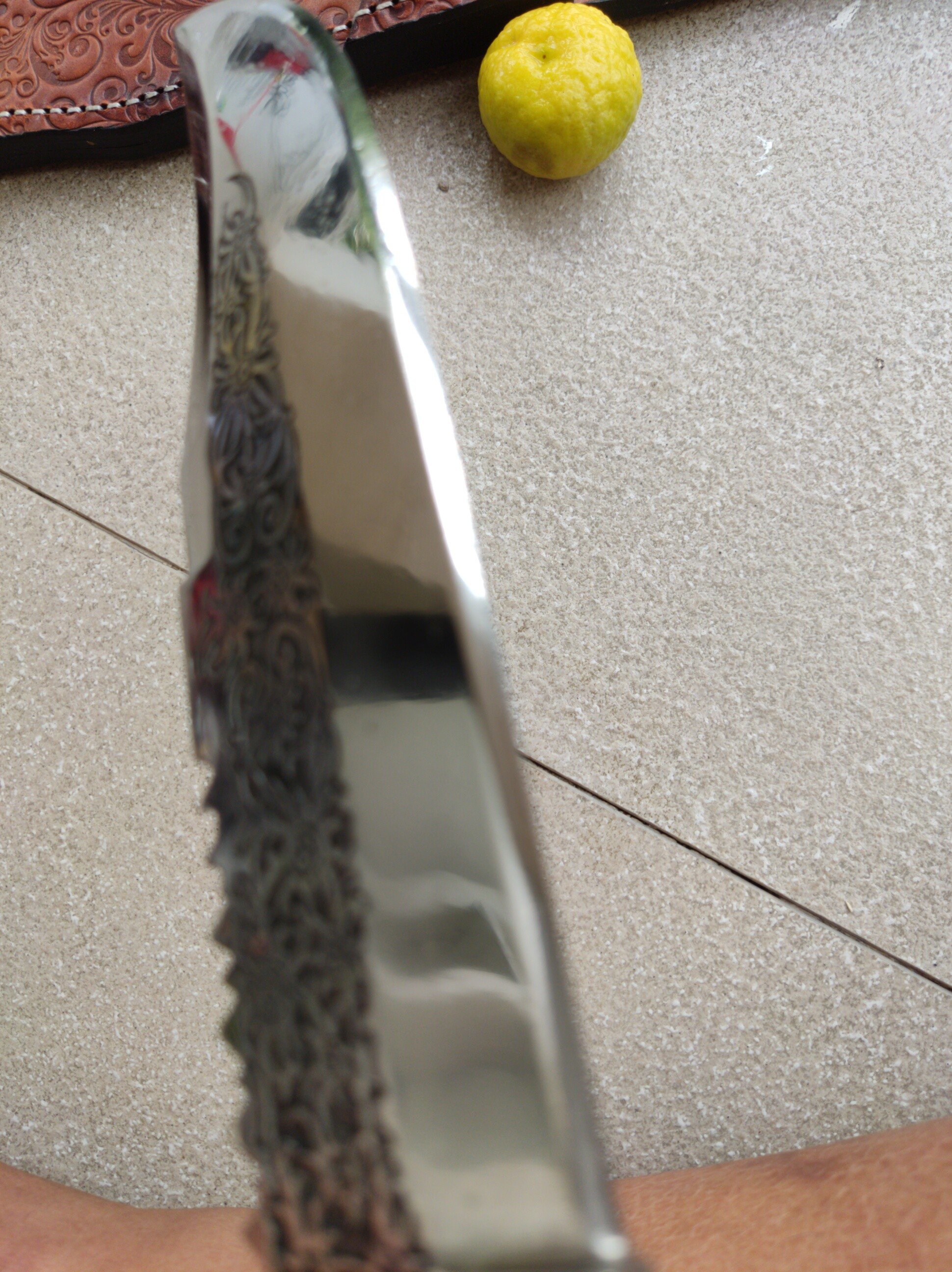 Teman cangkrukan ngopi saya (BHY..thanks bro!) menghibahkan pisau ini kepada saya. Pisau buatan pengrajin lokal ini berbahan baja D2. D2 bukan Baja kaleng-kaleng karena selain liat juga tahan karat.