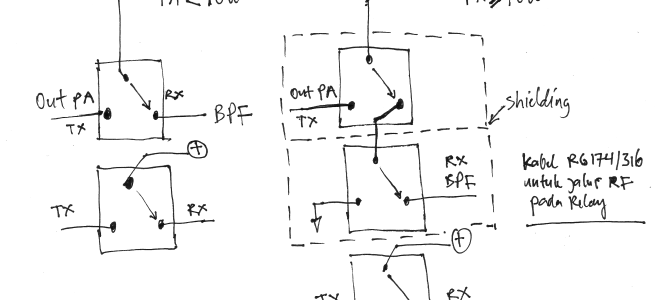 Kadang kala penempatan exciter dan PA (Power amplifier) RF jadi 1 agar hemat tempat. Beberapa kasus yang saya alami, jika shielding tidak ketat, maka osilasi pada amplifier HF akan mudah terjadi. Apalagi jika antar bagian mepet satu sama lain. Tapi kali ini soal relay. Untuk mudahnya, jika output PA/ amplifier HF kurang dari 10W, maka … Lanjutkan membaca CORINA Exciter, Relay, dan PA